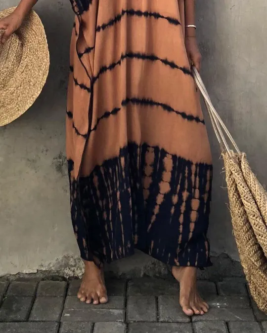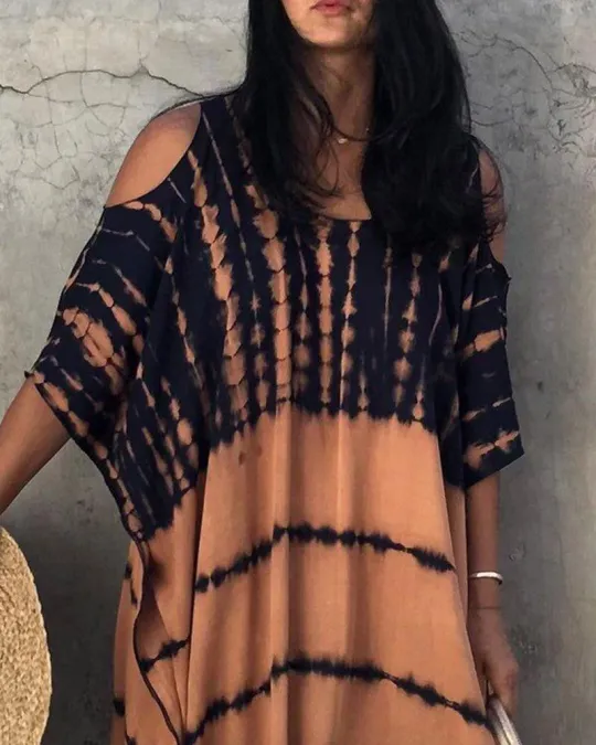 Tie-Dye Print Cold-Shoulder Casual Maxi Dress