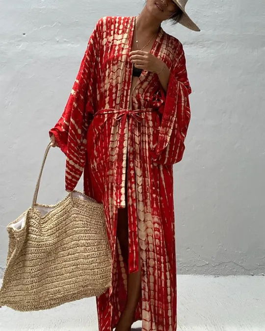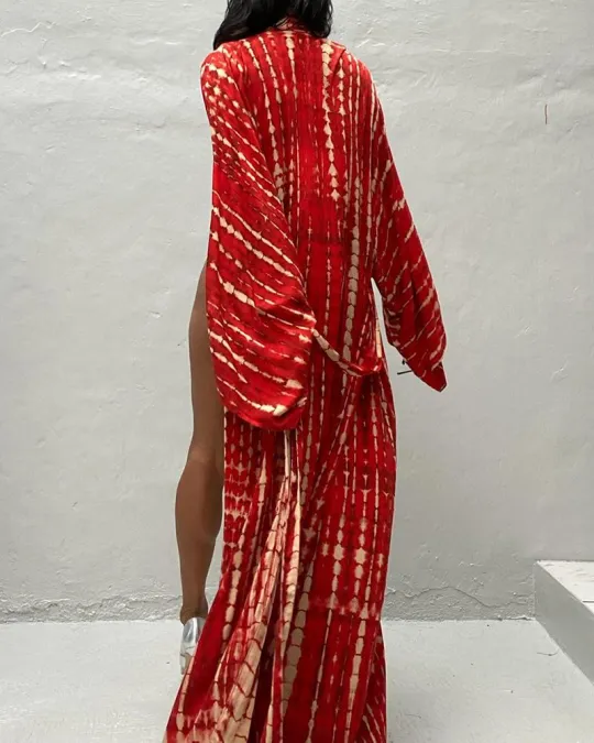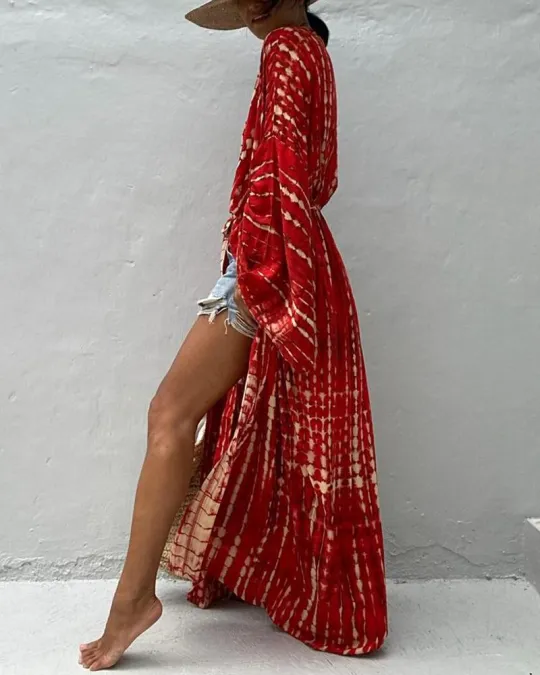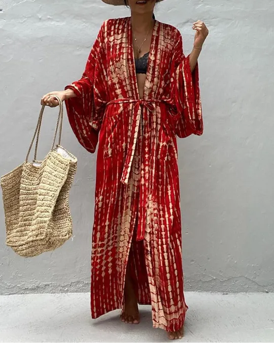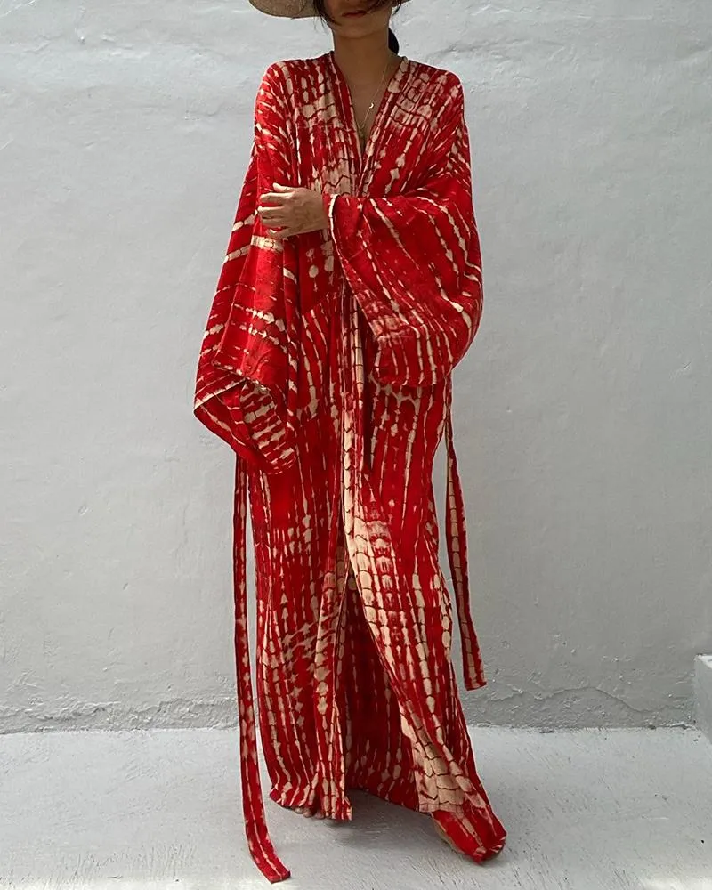 Tie-Dye Print Pocket Front Long Kimono Coat