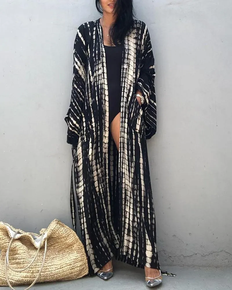 Tie-Dye Print Pocket Front Long Kimono Coat